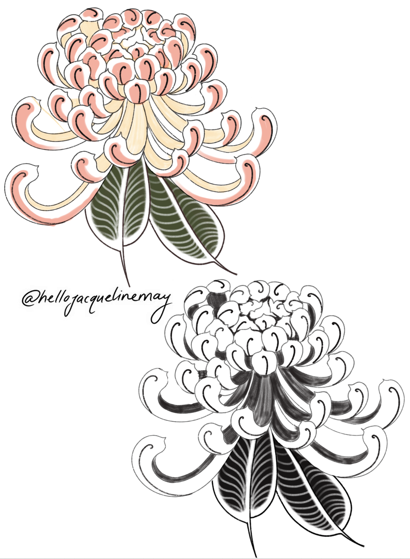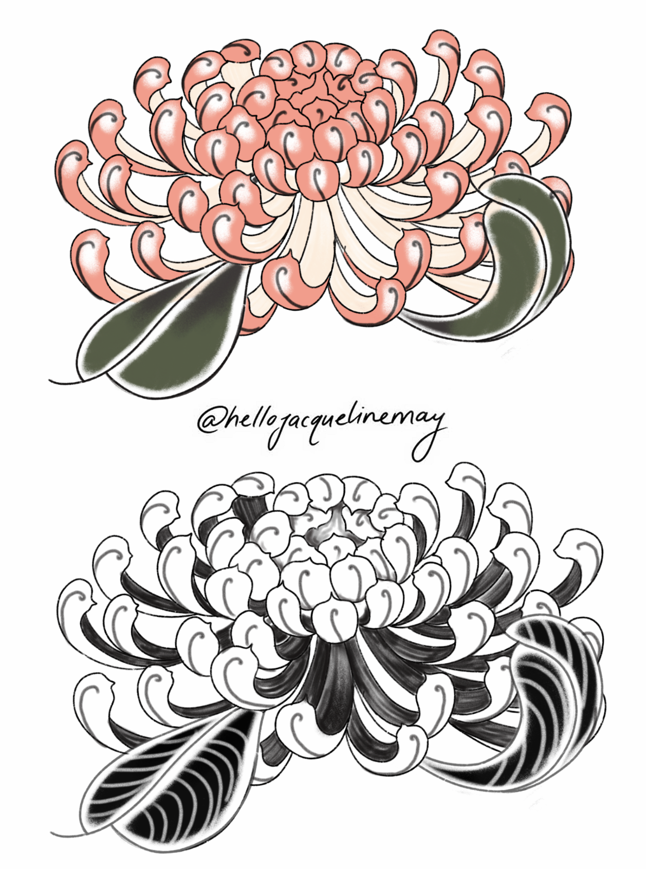 Chrysanthemums can be placed anywhere on the body - arms, thight, legs! I’ll also be freehanding some to ensure they fit!